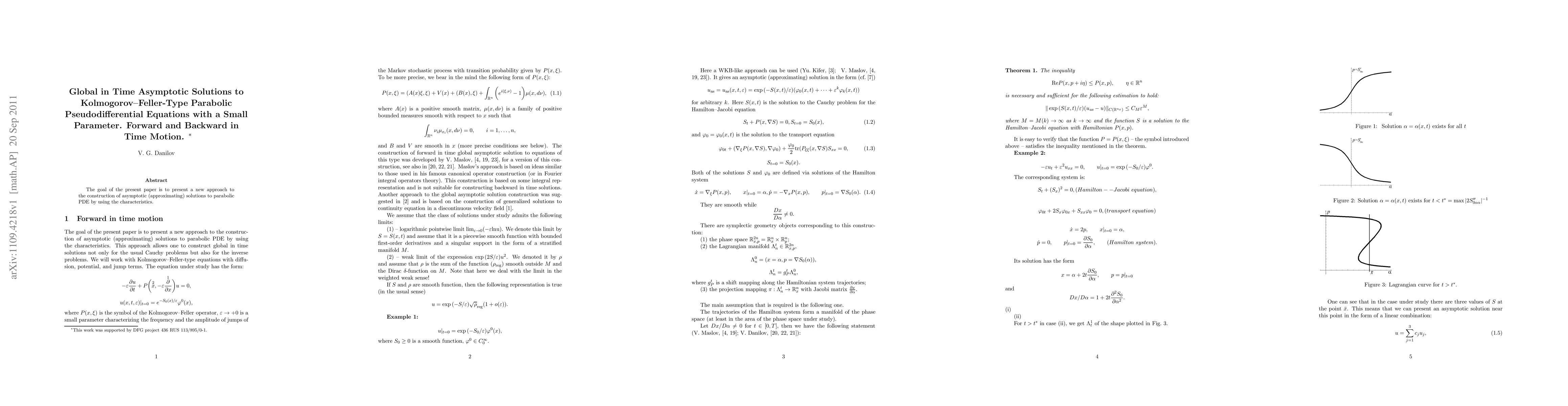 Summary: This paper introduces a novel method for constructing asymptotic solutions to Kolmogorov-Feller-type parabolic pseudodifferential equations, utilizing characteristics for both forward and backward in time motion. The approach aims to provide accurate approximations for these complex equations.