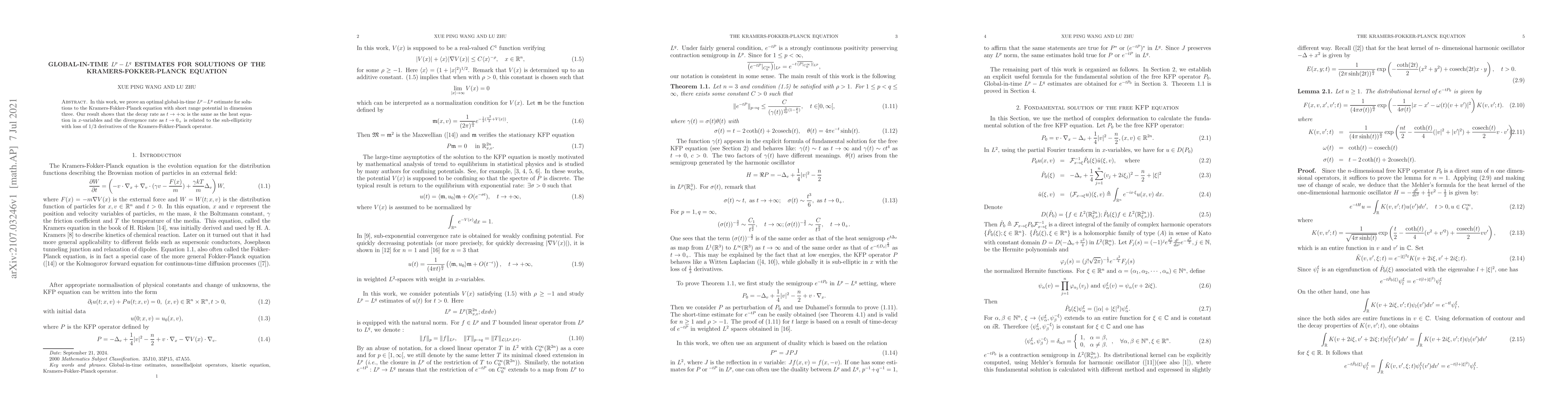 This paper establishes optimal global-in-time Lp-Lq estimates for solutions of the Kramers-Fokker-Planck equation in three dimensions, demonstrating that the decay rate mirrors that of the heat equation while the initial divergence correlates with the operator's sub-ellipticity, losing 1/3 derivatives.