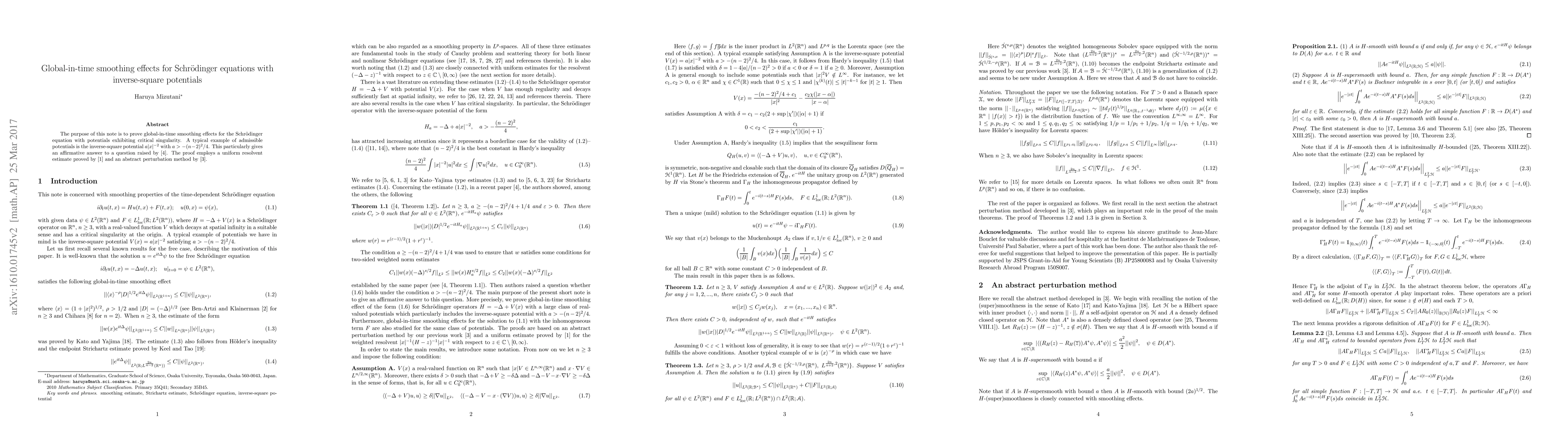 This paper proves global-in-time smoothing effects for Schrödinger equations with inverse-square potentials, addressing a question posed by Bui-D'Ancona-Duong-Li-Ly. The proof utilizes a uniform resolvent estimate and an abstract perturbation method.