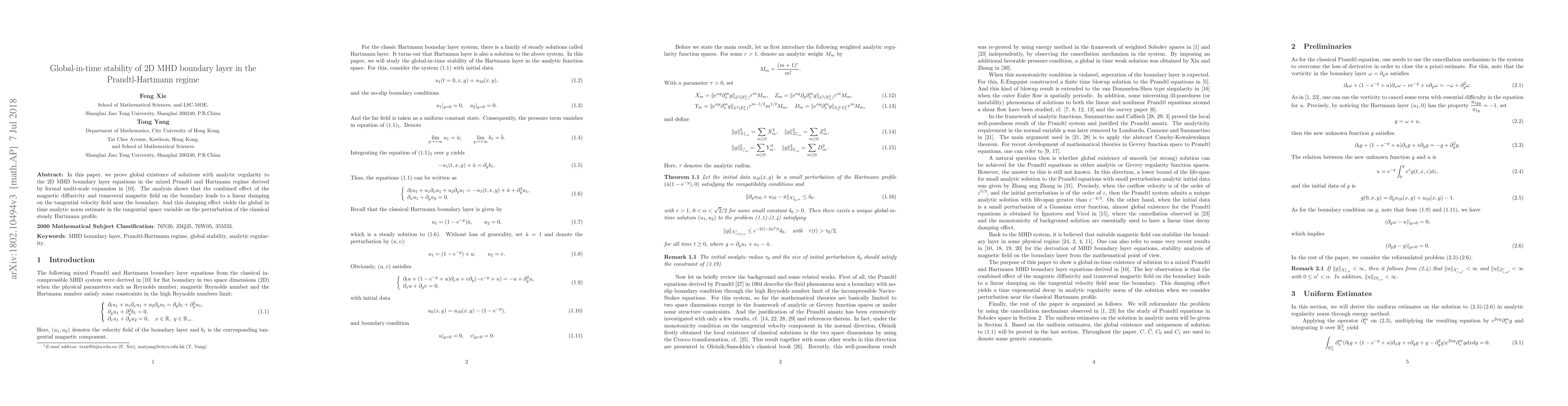 This paper proves global existence and analytic regularity of solutions to 2D MHD boundary layer equations in the Prandtl-Hartmann regime. The combined effect of magnetic diffusivity and a transverse magnetic field leads to linear damping on the tangential velocity field, ensuring global-in-time analytic norm estimates.
