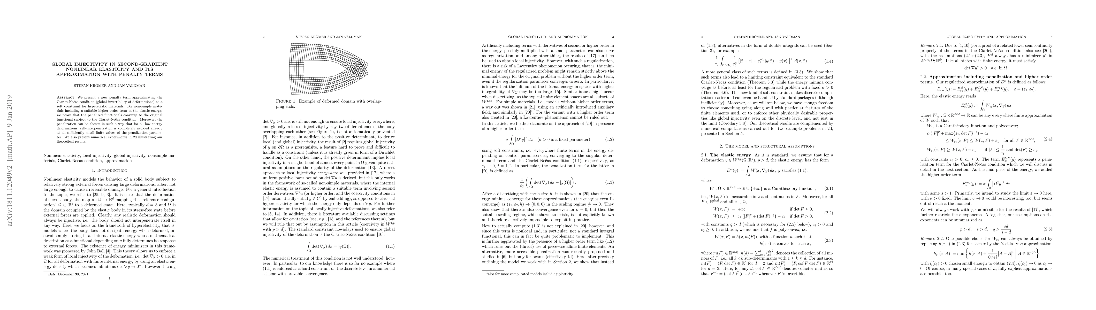 This research introduces a new penalty term that approximates the Ciarlet-Nečas condition, ensuring global invertibility of deformations in non-simple hyperelastic materials. The study proves convergence to the original functional under this condition and demonstrates, through numerical experiments, that self-interpenetration can be avoided even with small penalization values.
