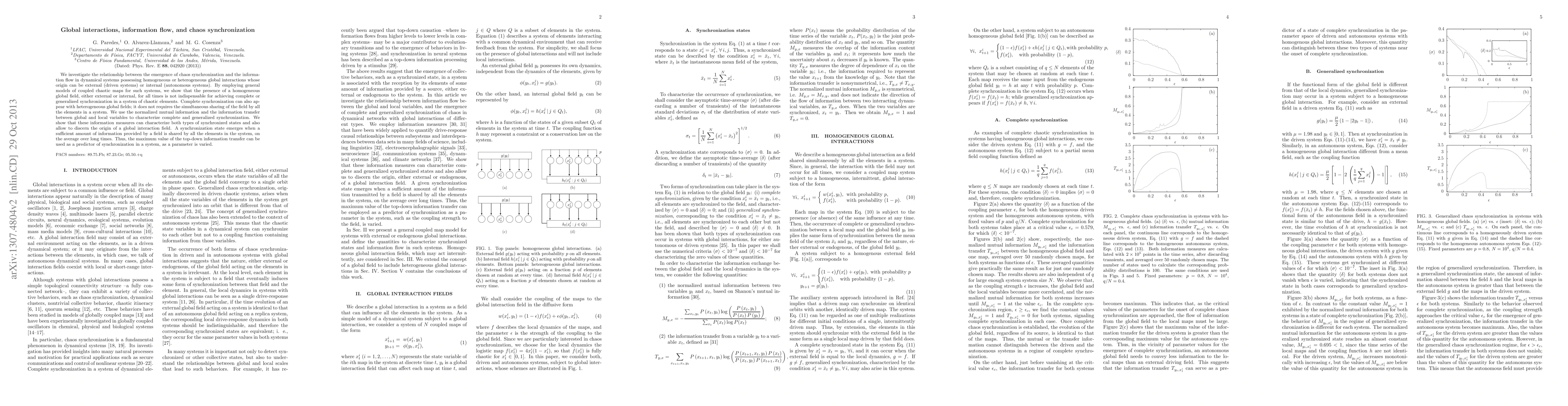 Researchers found that complete chaos synchronization can occur in systems with heterogeneous global interactions, not just homogeneous ones. They used information measures to characterize synchronized states and predicted synchronization using top-down information transfer.