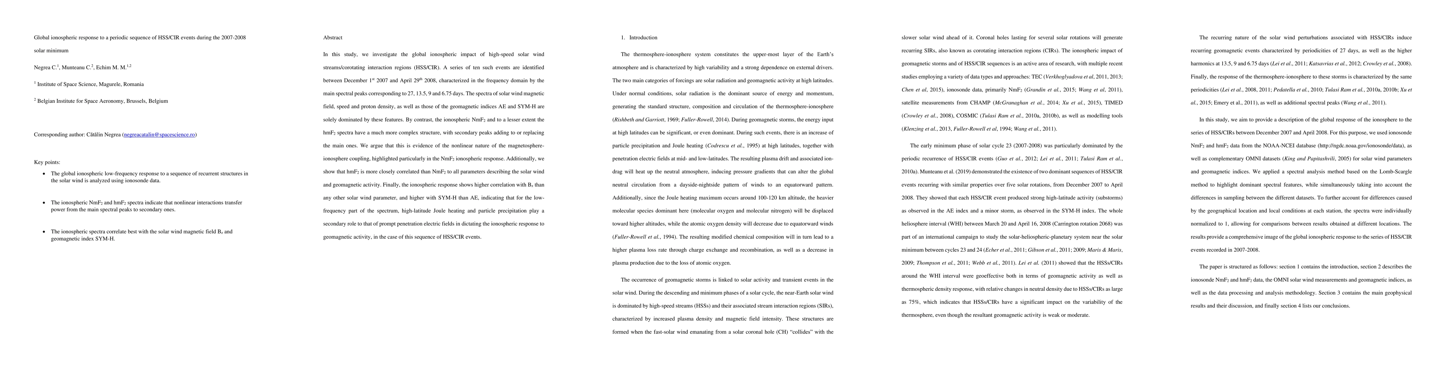 This study investigates the global ionospheric response to a series of high-speed solar wind streams/corotating interaction regions (HSS/CIR) events during the 2007-2008 solar minimum, finding that nonlinear magnetosphere-ionosphere coupling plays a key role in shaping the ionospheric response.