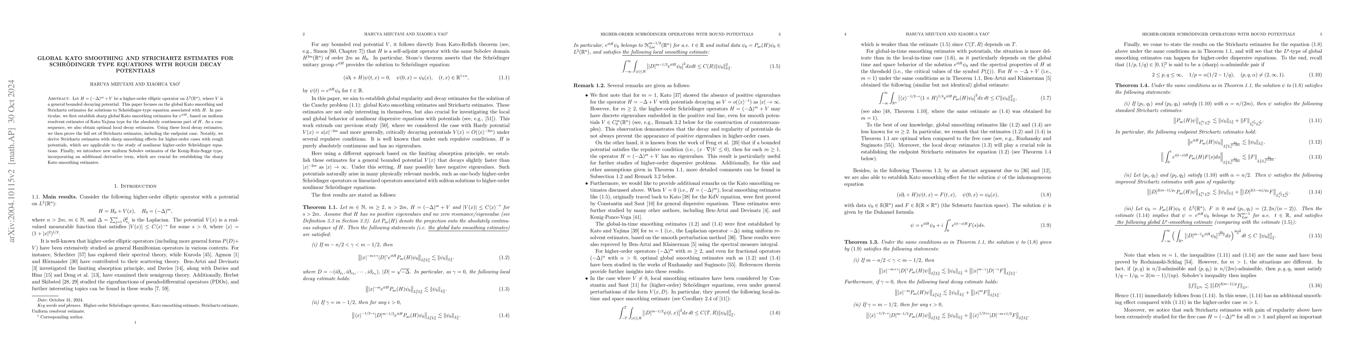 This paper establishes sharp global Kato smoothing and Strichartz estimates for higher-order Schrödinger operators with rough decay potentials, leveraging uniform resolvent estimates and new Sobolev inequalities to achieve optimal decay and smoothing effects. The results are significant for studying nonlinear higher-order Schrödinger equations.