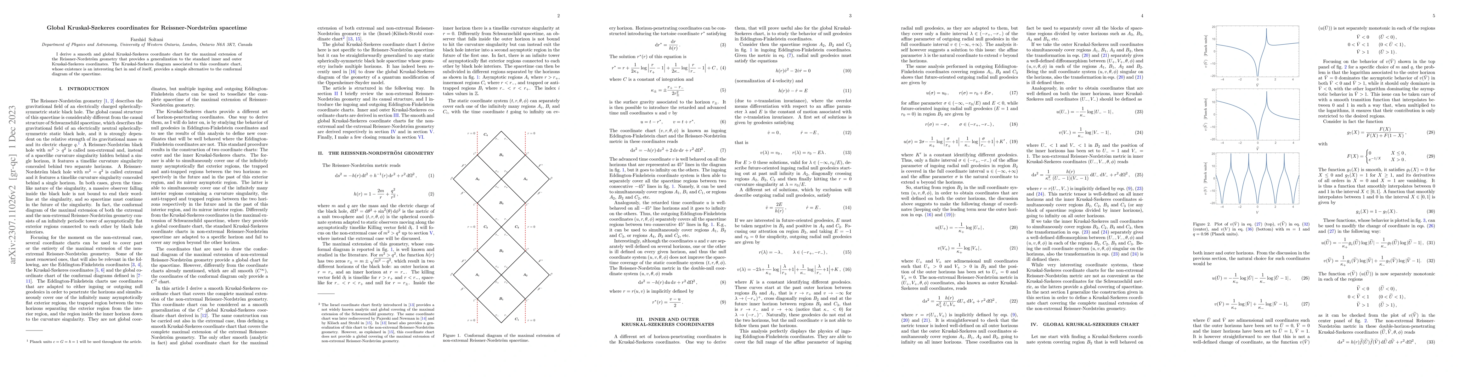 This paper derives a smooth and global Kruskal-Szekeres coordinate chart for the maximal extension of Reissner-Nordström spacetime, offering a generalization beyond standard inner and outer coordinates, and provides a Kruskal-Szekeres diagram with a clear physical interpretation.