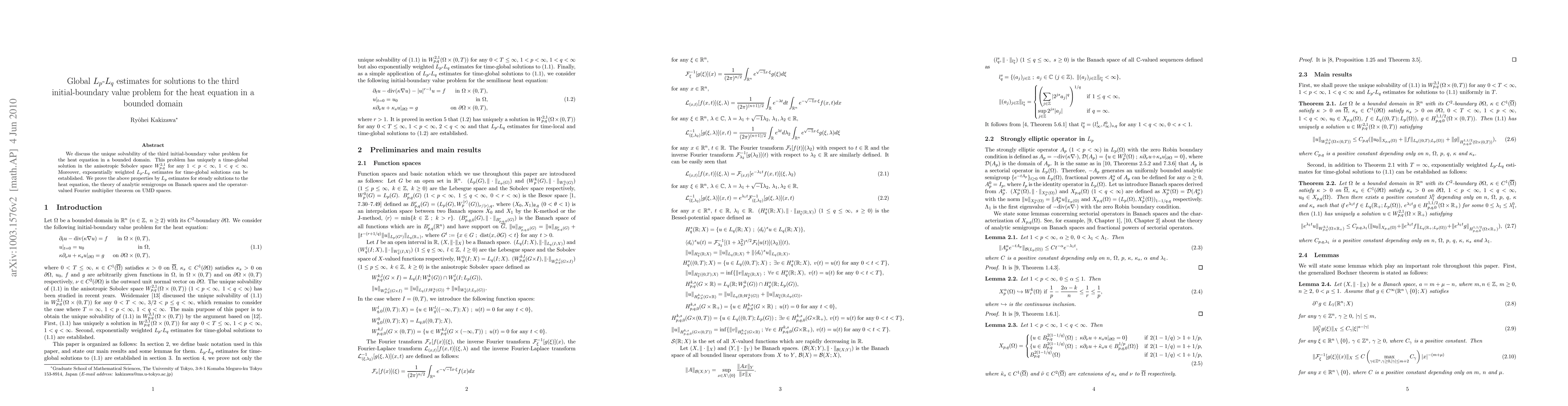 This paper investigates the unique solvability of the third initial-boundary value problem for the heat equation in a bounded domain, proving the existence of time-global solutions in an anisotropic Sobolev space. It also establishes exponentially weighted $L_{p}$-$L_{q}$ estimates for these solutions, utilizing $L_{p}$ estimates for steady solutions, analytic semigroups, and the operator-valued Fourier multiplier theorem.