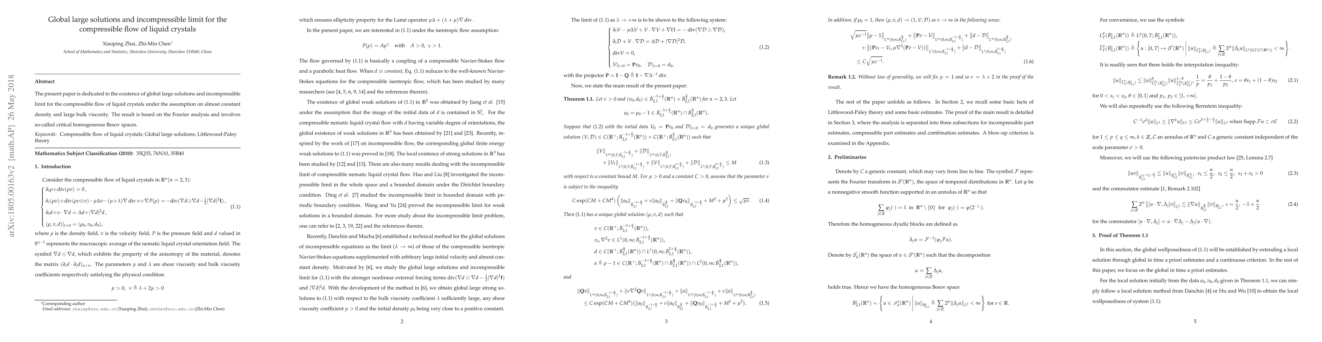 This paper investigates global large solutions and the incompressible limit for compressible liquid crystal flows, assuming nearly constant density and significant volume viscosity. The study employs Fourier analysis and critical Besov norms to derive its results.