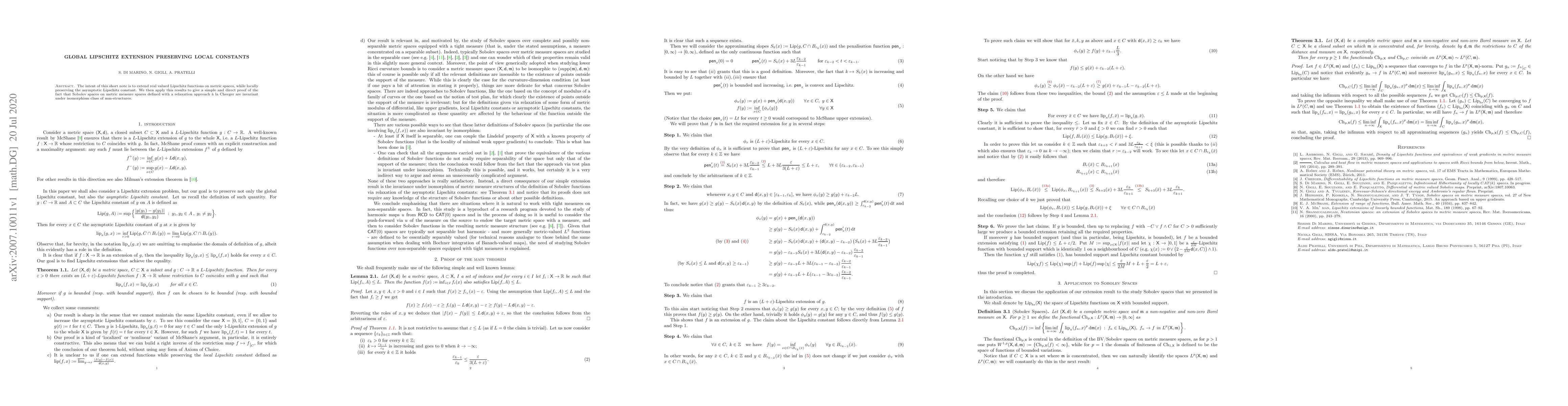 The main technical contribution is a novel extension result for Lipschitz functions on metric spaces that preserves local asymptotic Lipschitz constants, applicable to non-separable spaces with tight measures.