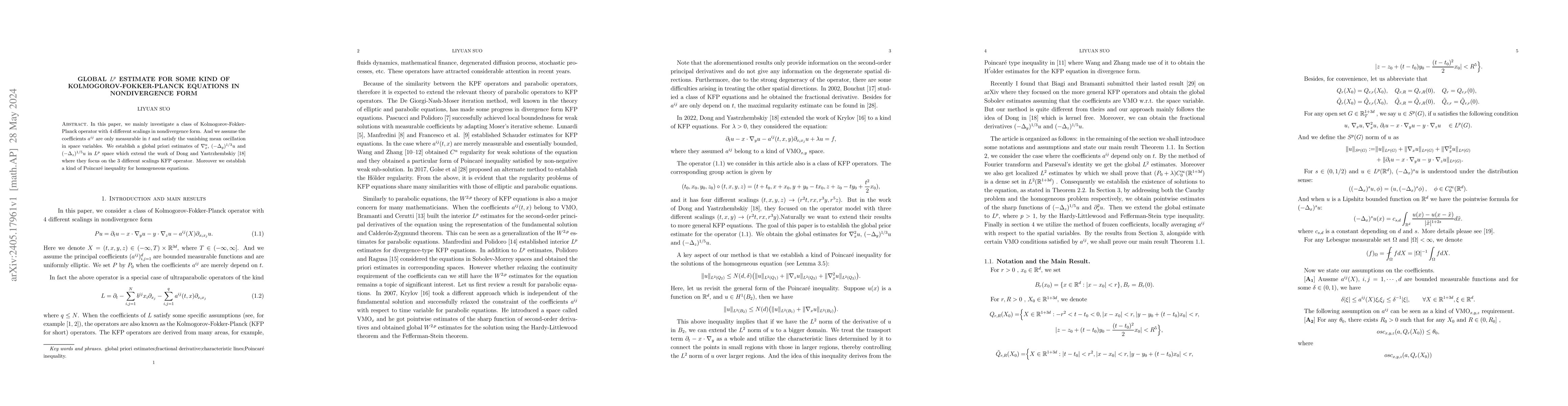 In this paper, we mainly investigate a class of Kolmogorov-Fokker-Planck operator with 4 different scalings in nondivergence form. And we assume the coefficients $a^{ij}$ are only measurable in $t$ and satisfy the vanishing mean oscillation in space variables. We establish a global priori estimates of $\nabla_x^u$, $\dy u$ and $\dz u$ in $L^p$ space which extend the work of Dong and Yastrzhembskiy \cite{ref49} where they focus on the 3 different scalings KFP operator. Moreover we establish a kind of Poincare inequality for homogeneous equations.