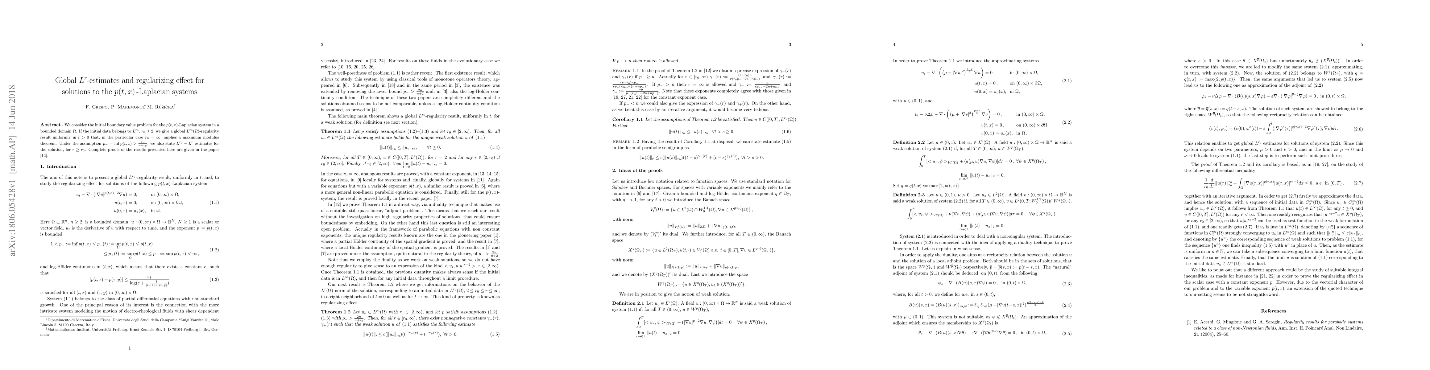 The paper establishes global L^r-estimates for solutions to p(t,x)-Laplacian systems, improving regularity results and providing insights into the system's behavior over time.