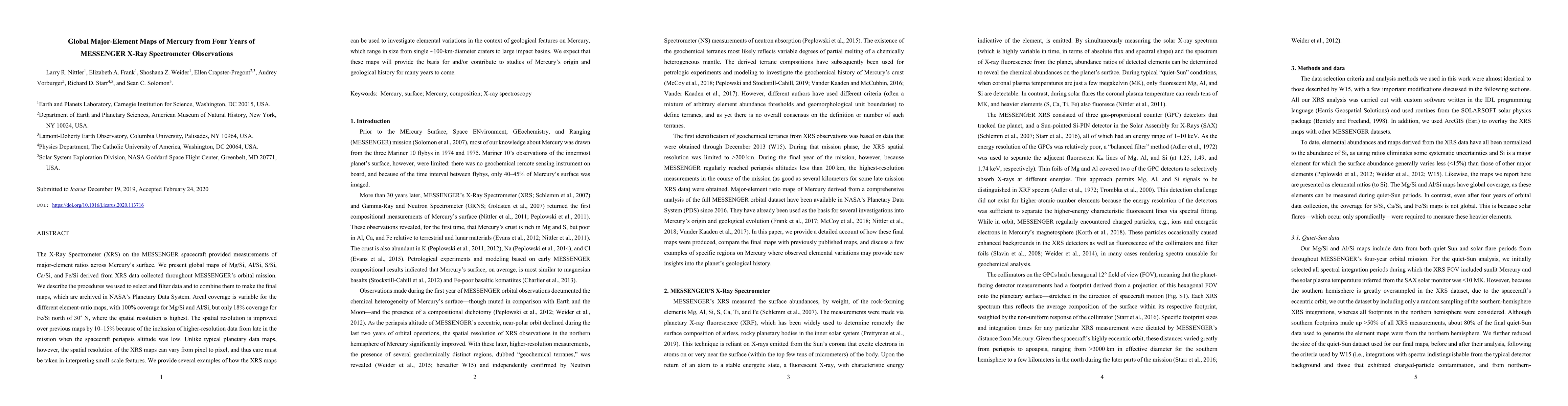 The MESSENGER X-Ray Spectrometer (XRS) produced global maps of major-element ratios on Mercury's surface, including Mg/Si, Al/Si, S/Si, Ca/Si, and Fe/Si, with improved spatial resolution. These maps, with variable coverage and resolution, offer insights into Mercury's geological features and will aid in future studies of its origin and history.