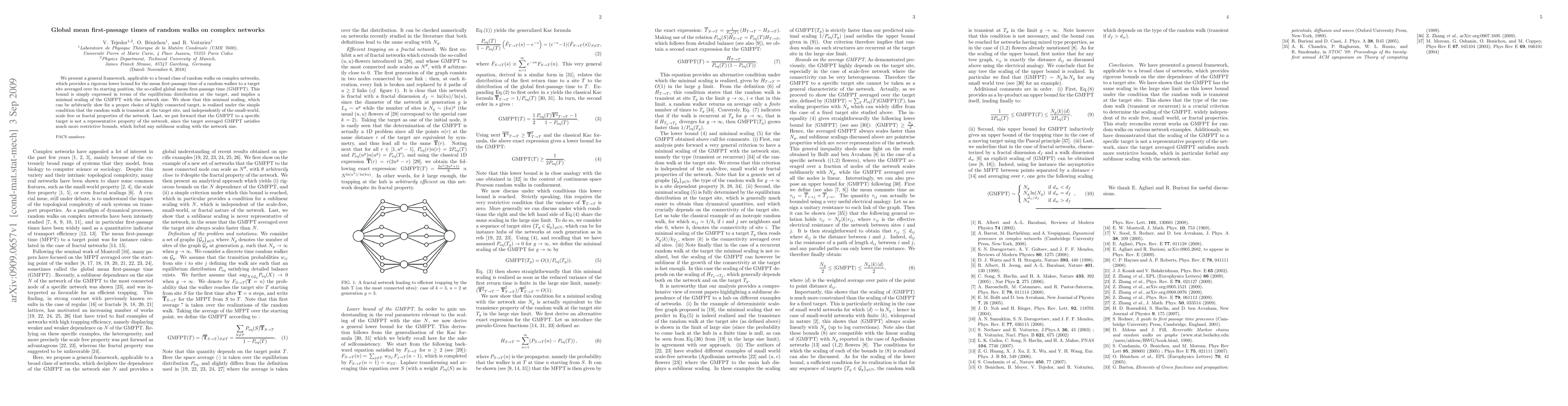 This paper develops a framework to rigorously bound the global mean first-passage time (GMFPT) for random walks on complex networks, showing that the minimal scaling with network size is achieved when the random walk is transient at the target site. It concludes that the GMFPT is not a representative network property due to restrictive bounds that prevent sublinear scaling with network size.