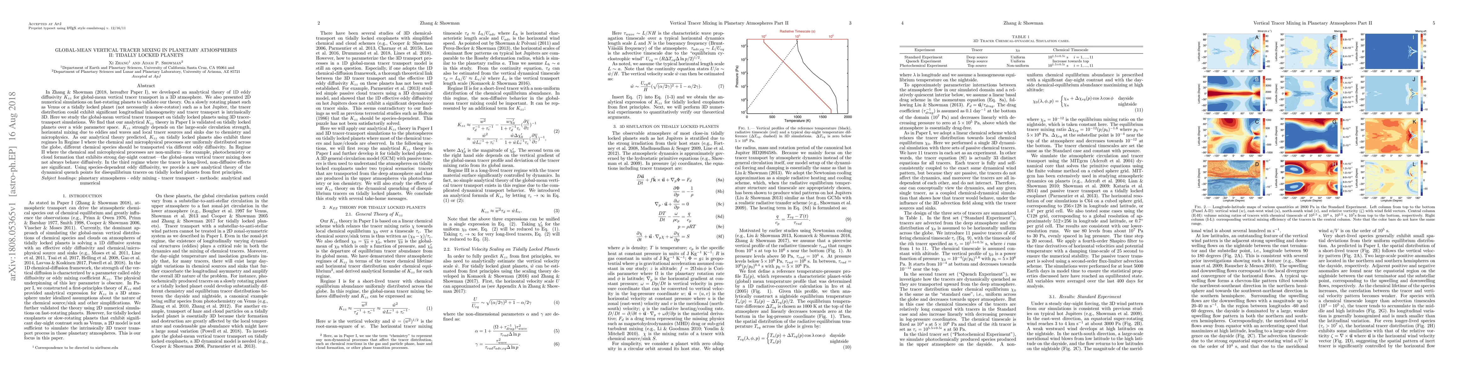 This paper extends the authors' analytical theory of vertical tracer mixing in planetary atmospheres to tidally locked planets, confirming its validity through 3D simulations. The study identifies three regimes of vertical tracer transport, highlighting the dependence on circulation strength, horizontal mixing, and chemical/microphysical processes.