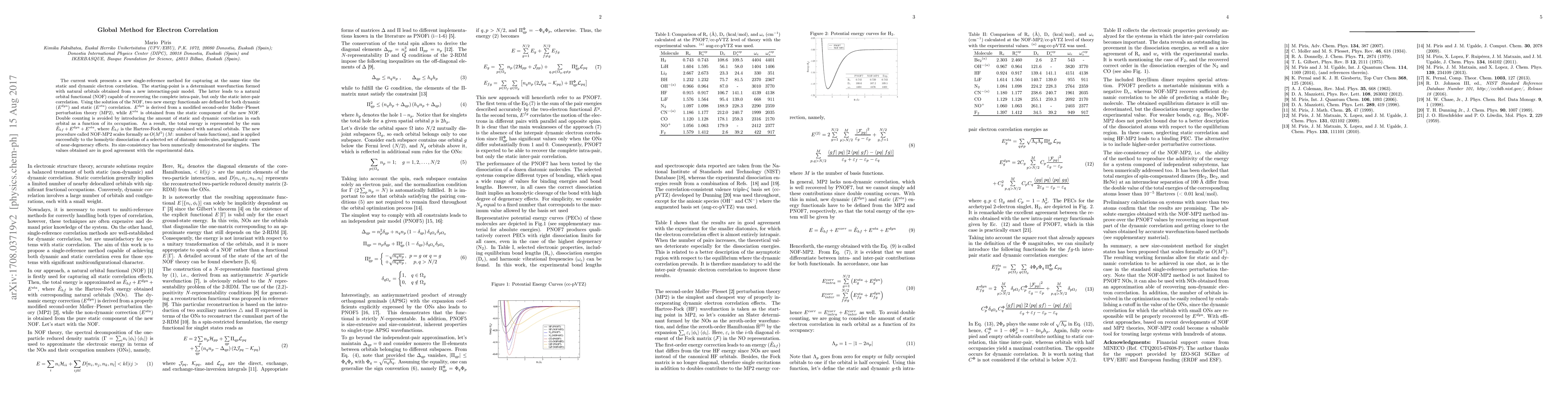 A new method for electron correlation, NOF-MP2, combines static and dynamic correlation using a natural orbital functional, achieving good agreement with experimental data in homolytic dissociation of diatomic molecules.