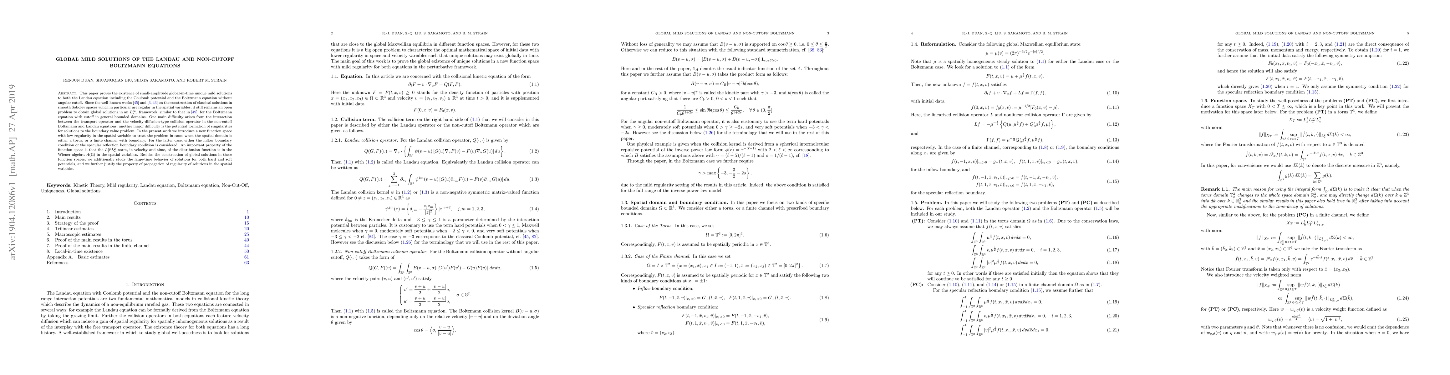 This paper establishes the existence of small-amplitude global-in-time mild solutions for the Landau and non-cutoff Boltzmann equations, addressing challenges posed by the interaction between transport and collision operators and the potential formation of singularities. A novel function space is introduced to handle solutions in bounded domains with specified boundary conditions.