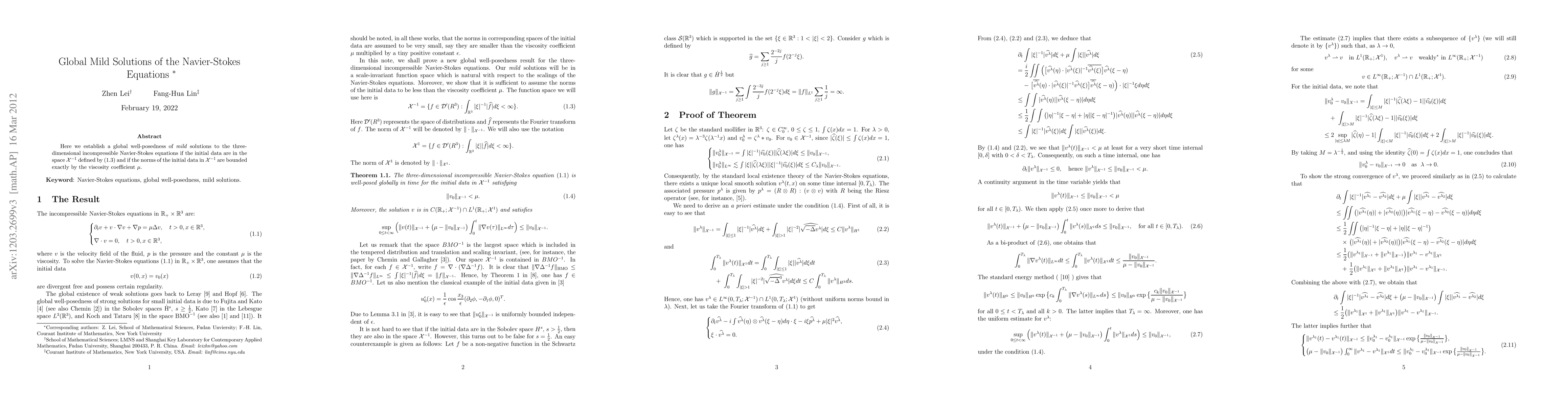 This paper proves global well-posedness for mild solutions to the 3D incompressible Navier-Stokes equations when initial data is in the space $\mathcal{X}^{-1}$ with norms bounded by the viscosity coefficient $\mu$. The existence of such solutions is established under specific conditions on the initial data.