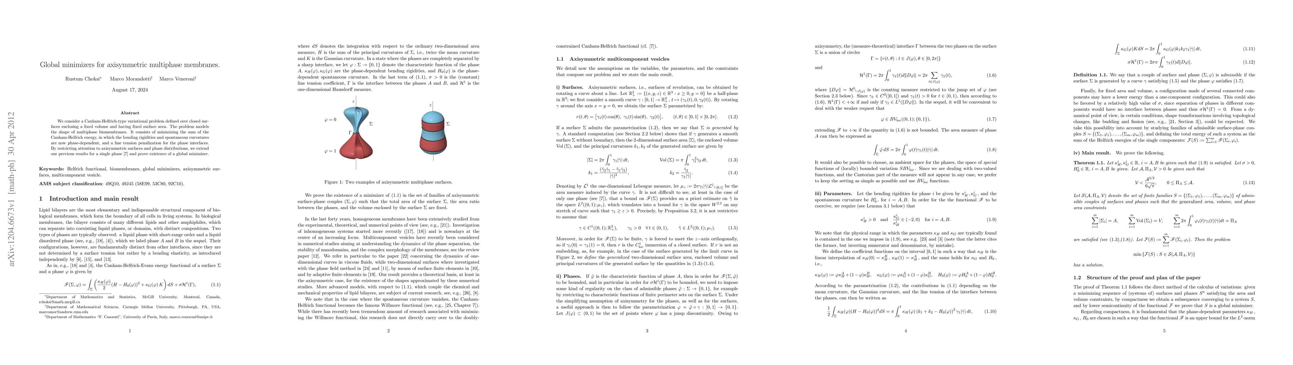The paper extends the existence and compactness results for multiphase membranes by incorporating phase-dependent bending rigidities and spontaneous curvatures, along with line tension for phase interfaces, under axisymmetric constraints.