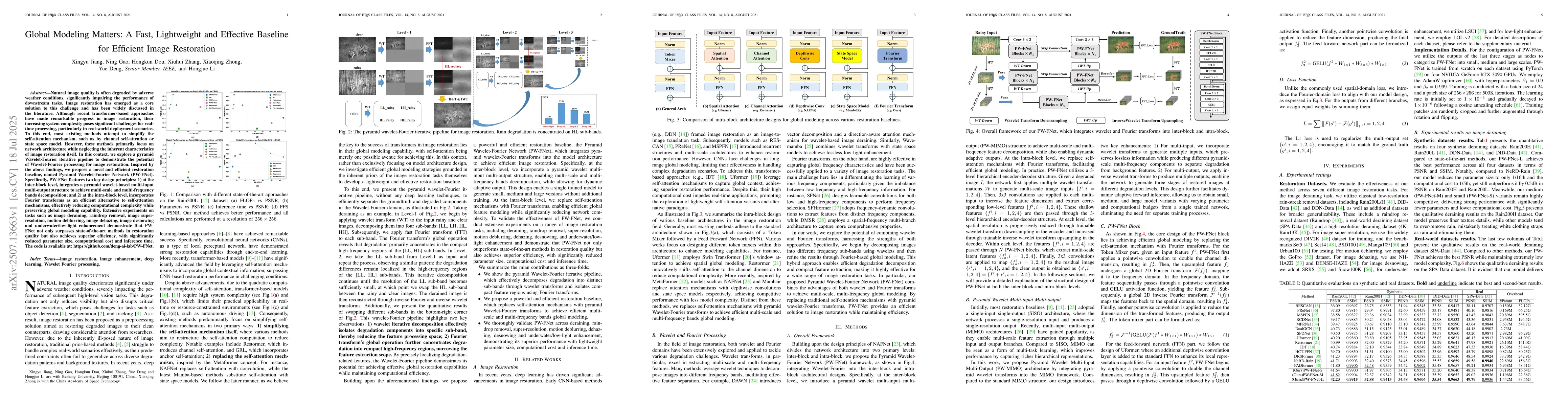 This research introduces Pyramid Wavelet-Fourier Network (PW-FNet), an efficient baseline for image restoration. PW-FNet simplifies complex transformer models using wavelet and Fourier transforms for multi-scale and frequency analysis, outperforming existing methods in restoration quality while significantly reducing computational demands and model size.
