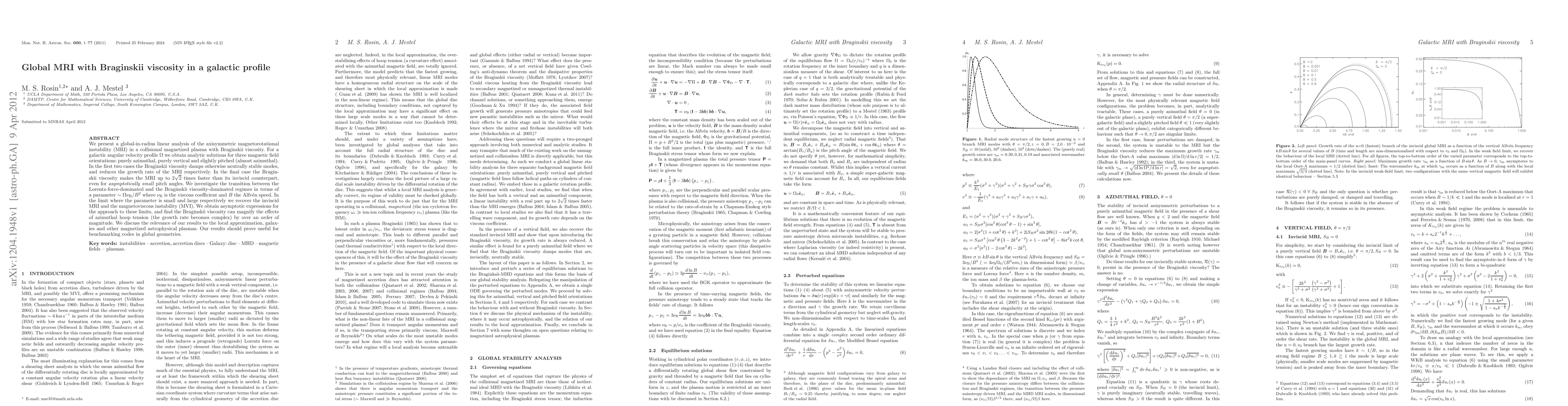 Researchers studied the impact of Braginskii viscosity on the magnetorotational instability in a galactic plasma, finding that it can speed up the process even at small pitch angles.