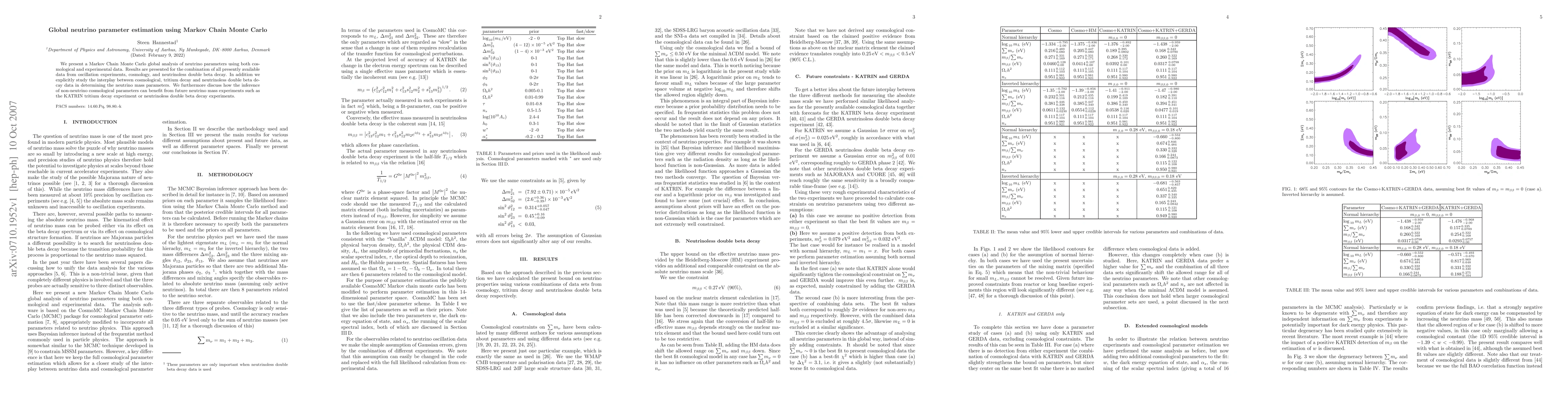 Researchers used Markov Chain Monte Carlo to analyze neutrino parameters from various data sources, including cosmology and experiments, and found new insights into the interplay between these data sets.