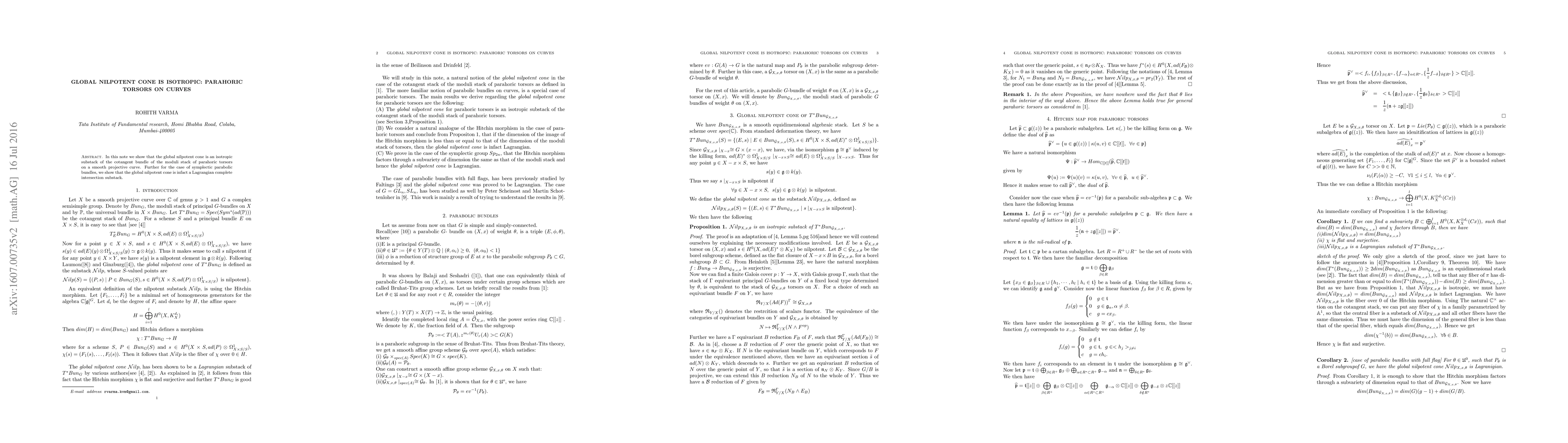 This paper investigates a global nilpotent cone for parahoric torsors on curves, finding it to be isotropic, and explores its implications in the context of algebraic geometry.