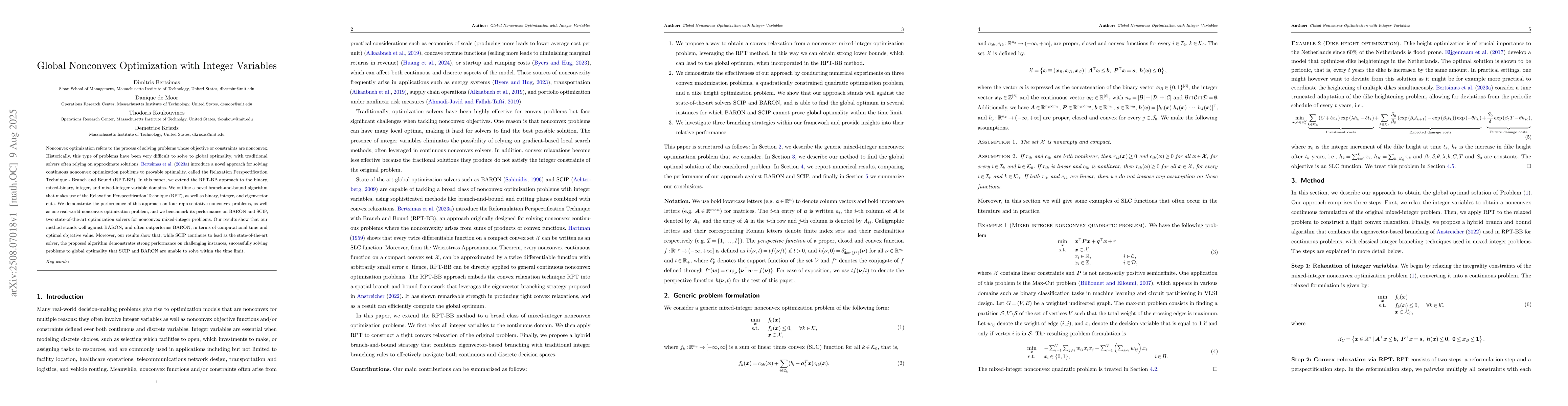 The paper presents a novel branch-and-bound algorithm, RPT-BB, that combines the RPT with integer and eigenvector branching rules to solve mixed-integer nonconvex optimization problems to global optimality.