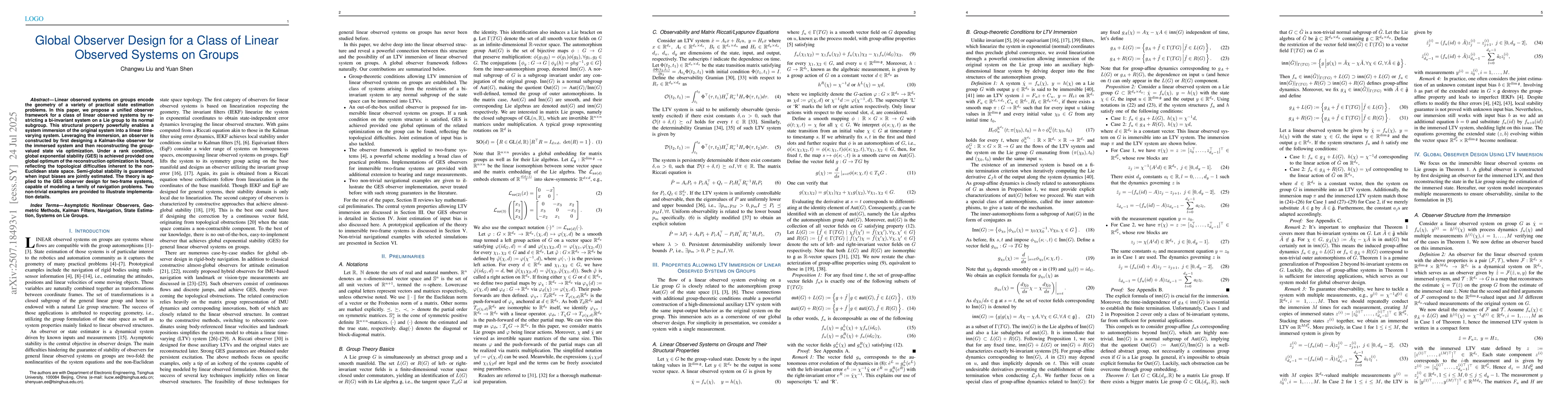 Linear observed systems on groups encode the geometry of a variety of practical state estimation problems. In this paper, we propose a unified observer framework for a class of linear observed systems by restricting a bi-invariant system on a Lie group to its normal subgroup. This structural property powerfully enables a system immersion of the original system into a linear time-varying system. Leveraging the immersion, an observer is constructed by first designing a Kalman-like observer for the immersed system and then reconstructing the group-valued state via optimization. Under a rank condition, global exponential stability (GES) is achieved provided one global optimum of the reconstruction optimization is found, reflecting the topological difficulties inherent to the non-Euclidean state space. Semi-global stability is guaranteed when input biases are jointly estimated. The theory is applied to the GES observer design for two-frame systems, capable of modeling a family of navigation problems. Two non-trivial examples are provided to illustrate implementation details.