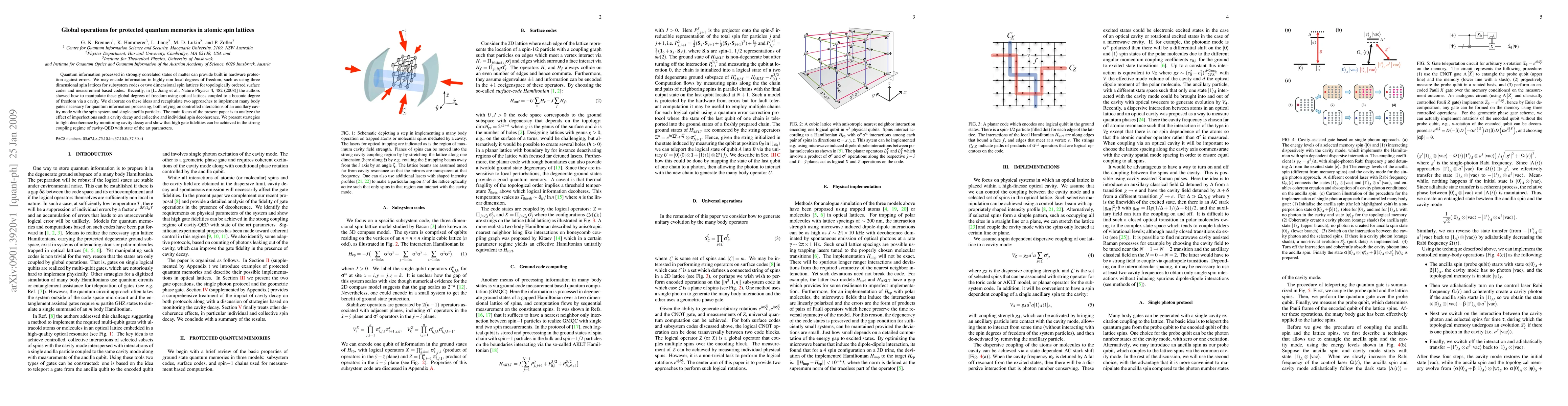Quantum information processed in strongly correlated states of matter can provide built in hardware protection against errors. We may encode information in highly non local degrees of freedom, such as using three dimensional spin lattices for subsystem codes or two dimensional spin lattices for topologically ordered surface codes and measurement based codes. Recently, in [L. Jiang et al., Nature Physics {\bf 4}, 482 (2008)] the authors showed how to manipulate these global degrees of freedom using optical lattices coupled to a bosonic degree of freedom via a cavity. We elaborate on these ideas and recapitulate two approaches to implement many body gates necessary for quantum information processing, both relying on controlled interactions of an ancillary cavity mode with the spin system and single ancilla particles. The main focus of the present paper is to analyze the effect of imperfections such a cavity decay and collective and individual spin decoherence. We present strategies to fight decoherence by monitoring cavity decay and show that high gate fidelities can be achieved in the strong coupling regime of cavity-QED with state of the art parameters.
