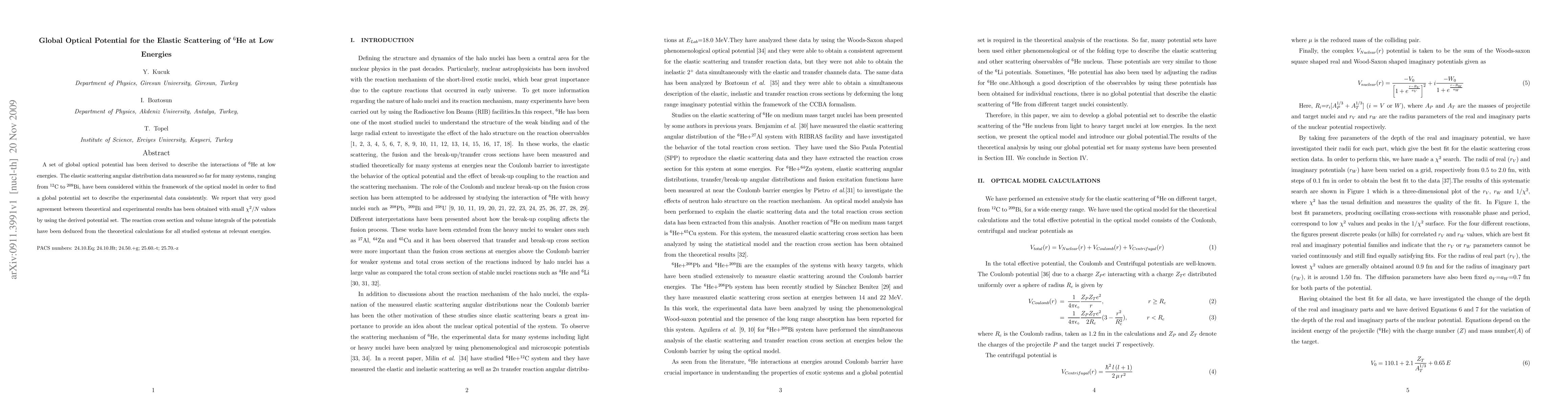 The paper presents a novel global optical potential set for $^{6}$He elastic scattering at low energies, derived by analyzing a wide range of experimental elastic scattering data from various targets.
