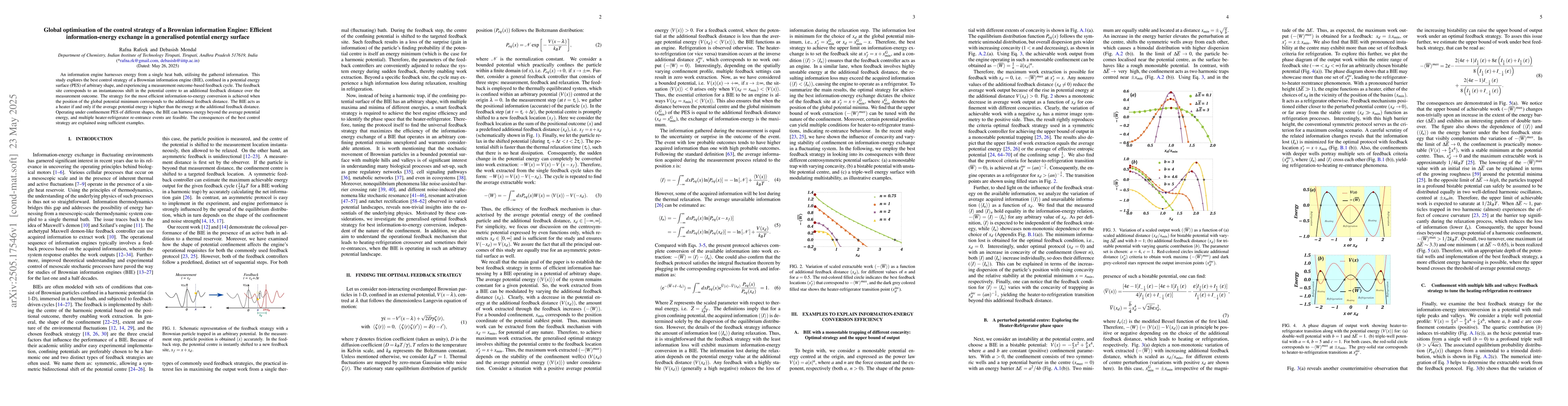 The paper presents a global optimisation strategy for BIE control, maximising information-energy conversion efficiency in arbitrary PES.
