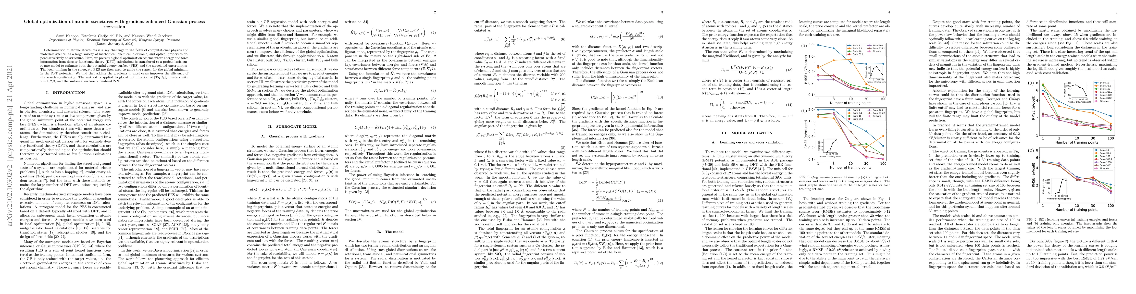 Researchers developed a global optimization method using a probabilistic surrogate model to estimate atomic structures, improving efficiency in finding the global minimum, with applications in computational physics and materials science.