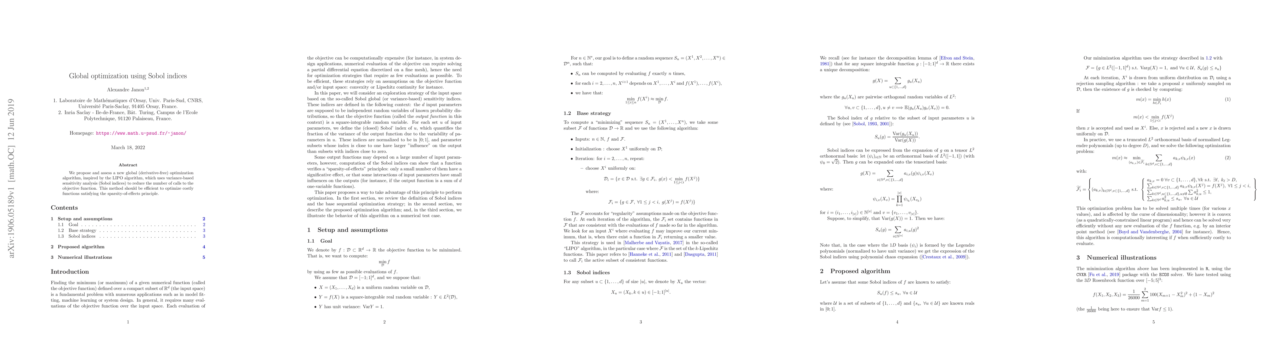 This paper introduces a new global optimization algorithm leveraging Sobol indices for variance-based sensitivity analysis, aiming to minimize objective function evaluations while efficiently handling costly functions that adhere to the sparsity-of-effects principle. The proposed method is inspired by the LIPO algorithm and seeks to enhance optimization efficiency.