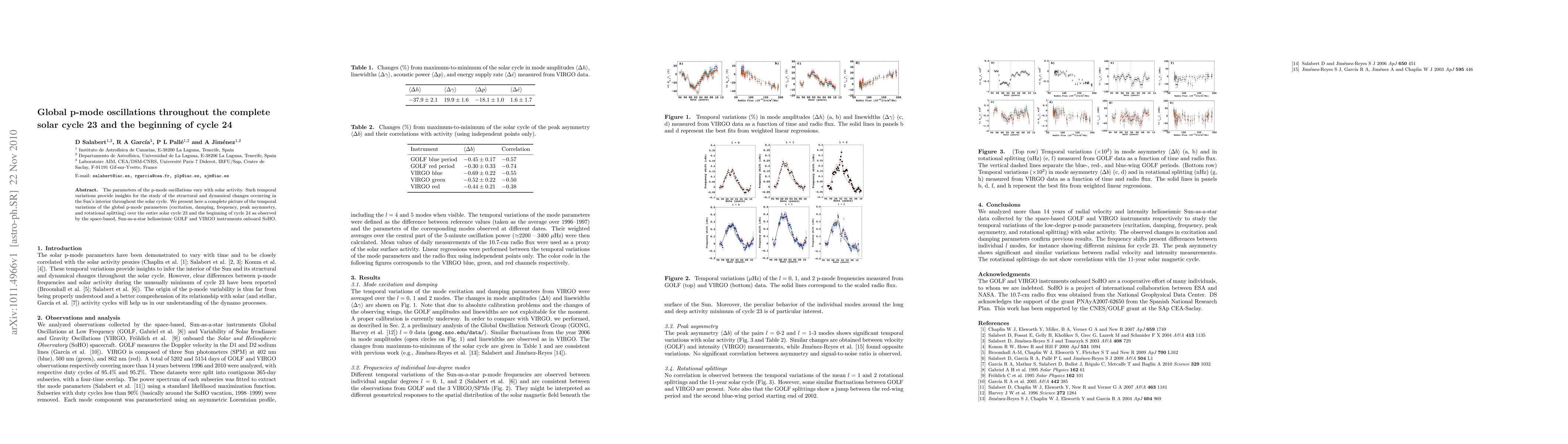 This study analyzes global p-mode oscillations in the Sun over solar cycle 23 and the start of cycle 24, revealing temporal variations that provide insights into the Sun's interior changes.