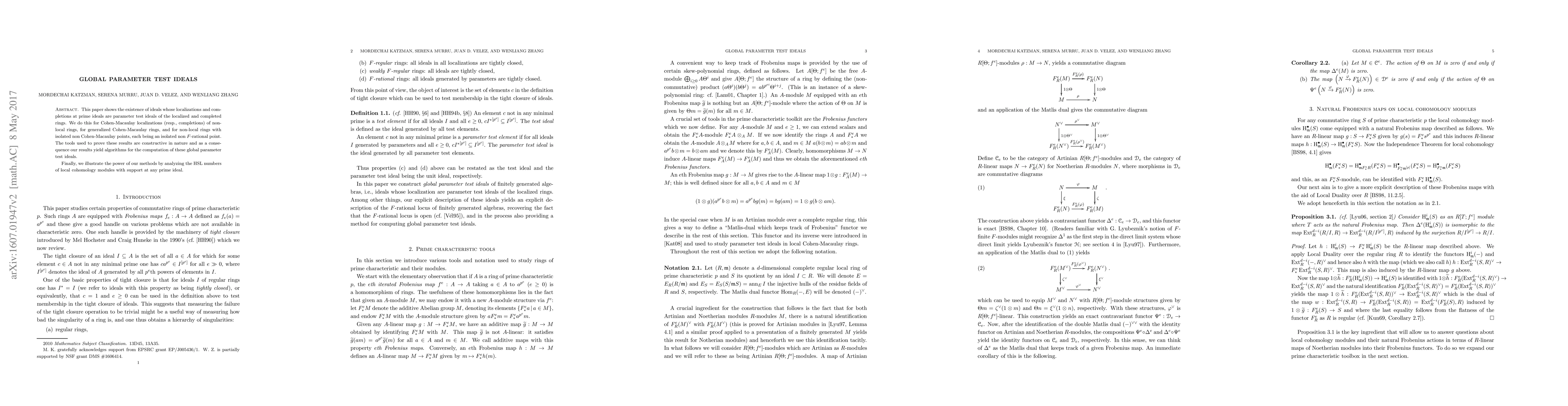 This paper establishes the existence of global parameter test ideals for various types of rings, including Cohen-Macaulay localizations and completions, generalized Cohen-Macaulay rings, and non-local rings with isolated non $F$-rational points. The constructive methods used provide algorithms for computing these ideals and demonstrate their utility through an analysis of HSL numbers in local cohomology modules.