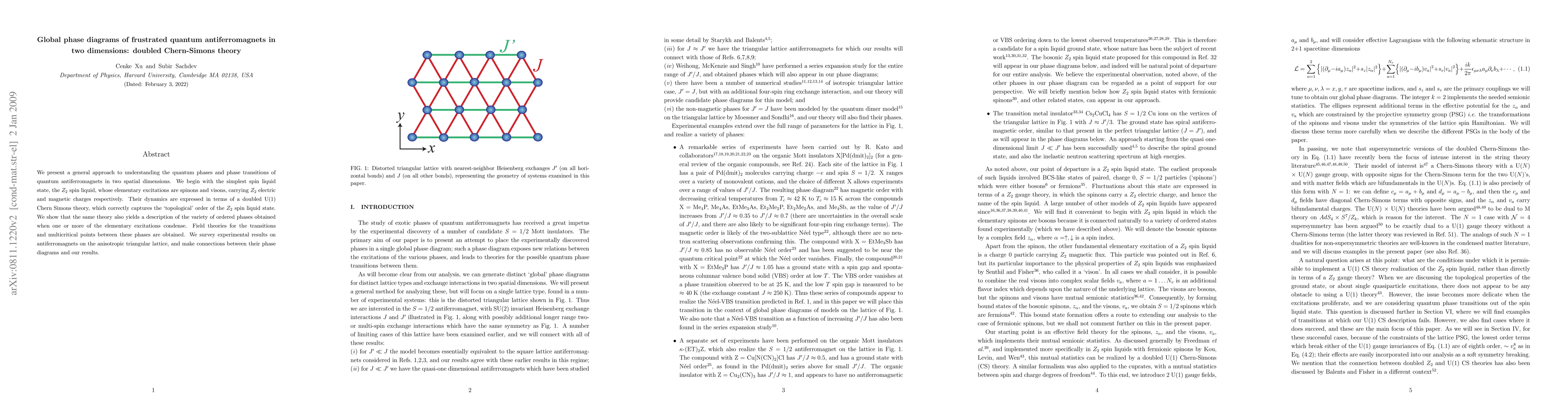 This paper outlines a comprehensive framework for understanding the quantum phases and transitions in two-dimensional quantum antiferromagnets, focusing on the Z_2 spin liquid characterized by spinons and visons. It employs a doubled U(1) Chern-Simons theory to describe these phases and their transitions, connecting theoretical findings with experimental data on anisotropic triangular lattices.