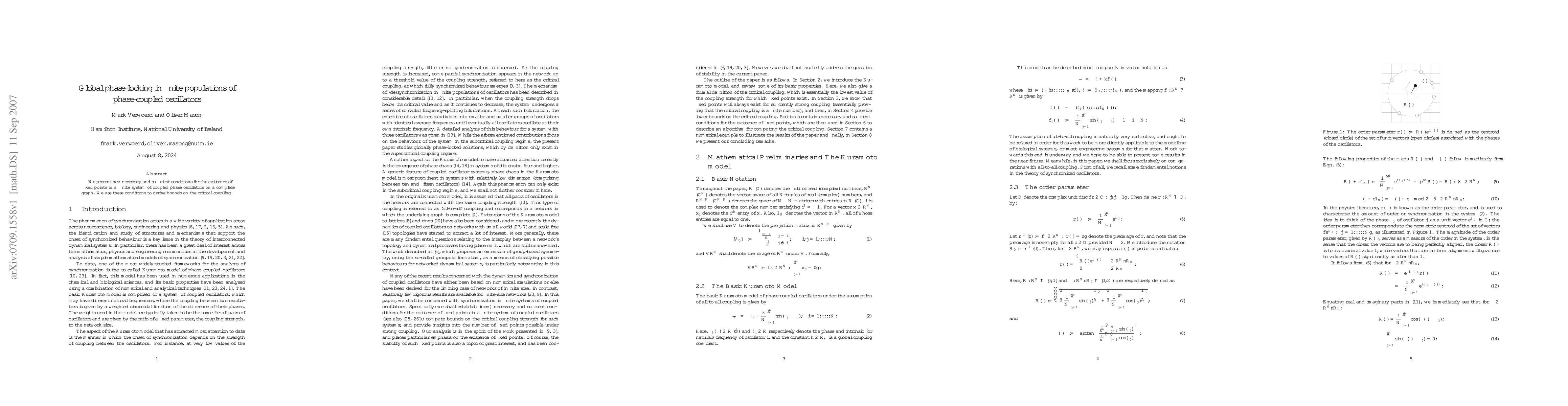 We present new necessary and sufficient conditions for the existence of fixed points in a finite system of coupled phase oscillators on a complete graph. We use these conditions to derive bounds on the critical coupling.