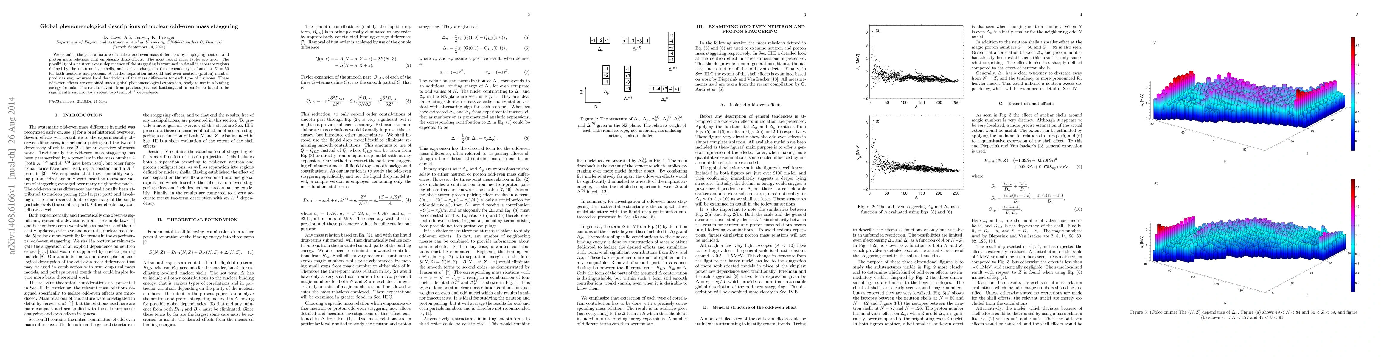 This paper investigates nuclear odd-even mass staggering using neutron and proton mass relations, revealing a significant change in neutron excess dependency at $Z=50$. It provides a global phenomenological expression for these effects, outperforming previous parametrizations, especially those based on $A^{-1}$ dependence.