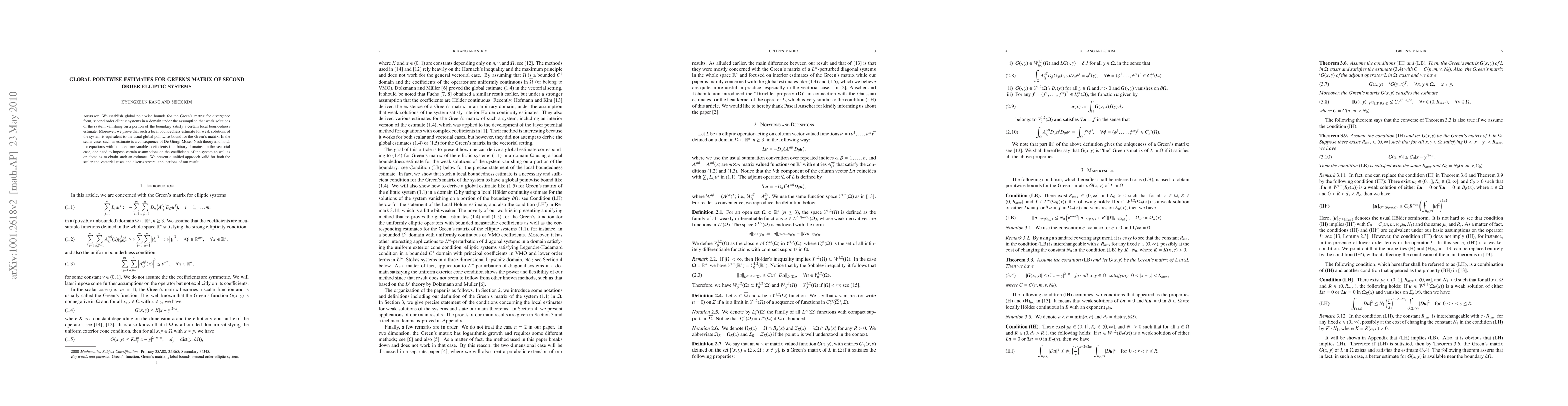 We establish global pointwise bounds for the Green's matrix for divergence form, second order elliptic systems in a domain under the assumption that weak solutions of the system vanishing on a portion of the boundary satisfy a certain local boundedness estimate. Moreover, we prove that such a local boundedness estimate for weak solutions of the system is equivalent to the usual global pointwise bound for the Green's matrix. In the scalar case, such an estimate is a consequence of De Giorgi-Moser-Nash theory and holds for equations with bounded measurable coefficients in arbitrary domains. In the vectorial case, one need to impose certain assumptions on the coefficients of the system as well as on domains to obtain such an estimate. We present a unified approach valid for both the scalar and vectorial cases and discuss several applications of our result.