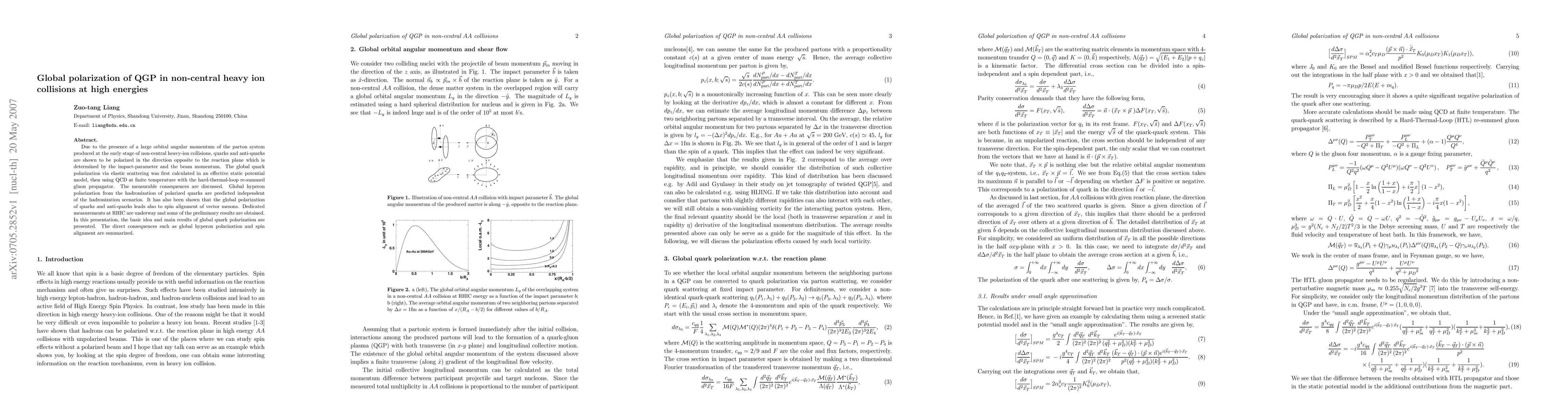 This paper investigates the global polarization of quarks and anti-quarks in non-central heavy-ion collisions, showing they align opposite to the reaction plane due to large orbital angular momentum. Predictions include global hyperon polarization and vector meson spin alignment, with preliminary RHIC measurements underway.