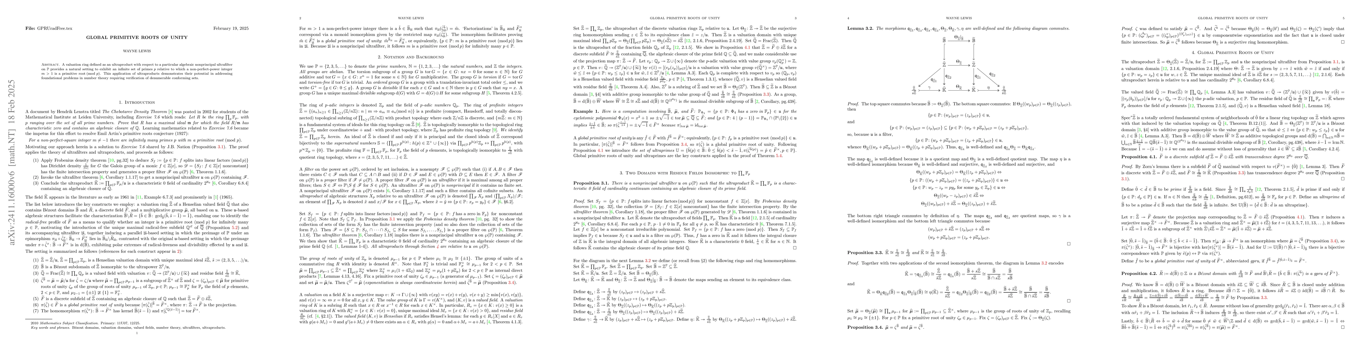 The paper utilizes ultraproducts and a specific algebraic nonprincipal ultrafilter on $\mathbb{P}$ to construct a valuation ring that reveals an infinite set of primes where a non-perfect-power integer greater than one is a primitive root of unity modulo these primes, showcasing ultraproducts' utility in number theory.