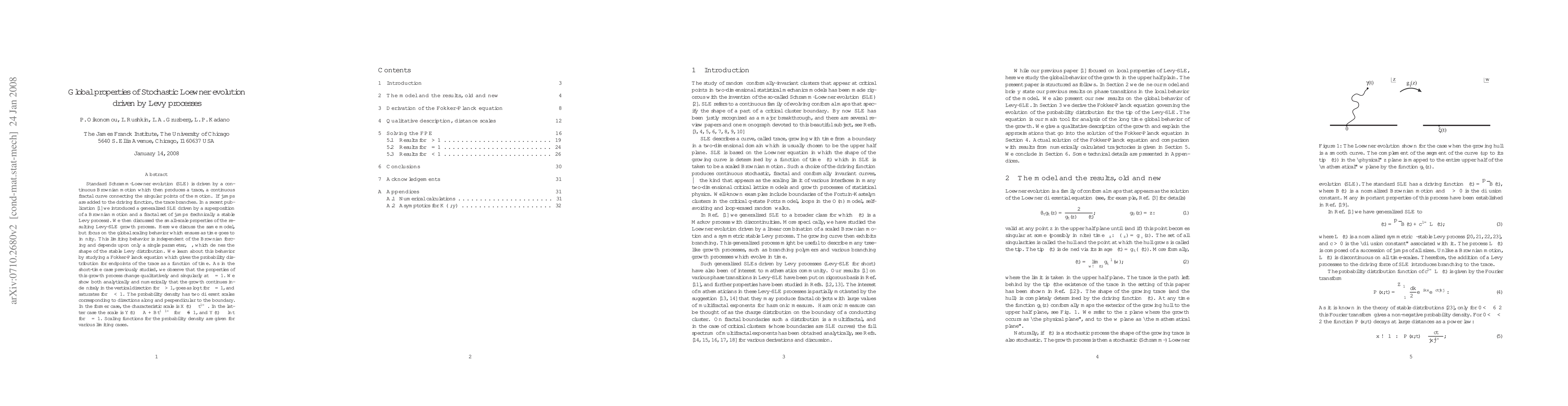 Standard Schramm-Loewner evolution (SLE) is driven by a continuous Brownian motion which then produces a trace, a continuous fractal curve connecting the singular points of the motion. If jumps are added to the driving function, the trace branches. In a recent publication [1] we introduced a generalized SLE driven by a superposition of a Brownian motion and a fractal set of jumps (technically a stable L\'evy process). We then discussed the small-scale properties of the resulting L\'evy-SLE growth process. Here we discuss the same model, but focus on the global scaling behavior which ensues as time goes to infinity. This limiting behavior is independent of the Brownian forcing and depends upon only a single parameter, $\alpha$, which defines the shape of the stable L\'evy distribution. We learn about this behavior by studying a Fokker-Planck equation which gives the probability distribution for endpoints of the trace as a function of time. As in the short-time case previously studied, we observe that the properties of this growth process change qualitatively and singularly at $\alpha =1$. We show both analytically and numerically that the growth continues indefinitely in the vertical direction for $\alpha > 1$, goes as $\log t$ for $\alpha = 1$, and saturates for $\alpha< 1$. The probability density has two different scales corresponding to directions along and perpendicular to the boundary. In the former case, the characteristic scale is $X(t) \sim t^{1/\alpha}$. In the latter case the scale is $Y(t) \sim A + B t^{1-1/\alpha}$ for $\alpha \neq 1$, and $Y(t) \sim \ln t$ for $\alpha = 1$. Scaling functions for the probability density are given for various limiting cases.