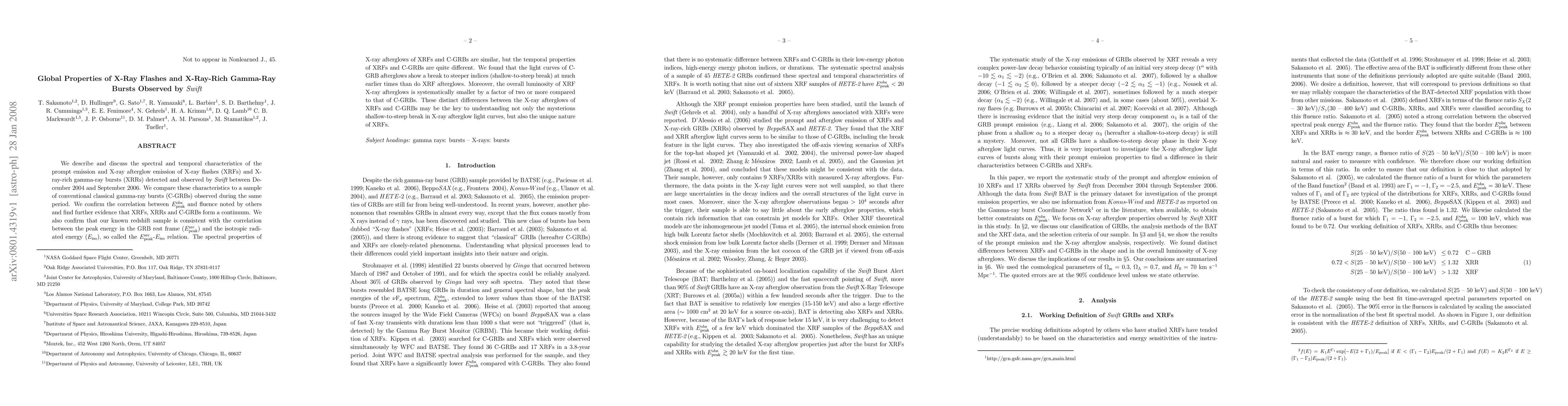 This study analyzes the spectral and temporal characteristics of X-ray flashes and X-ray-rich gamma-ray bursts observed by Swift, finding they form a continuum with classical gamma-ray bursts. The X-ray afterglows of XRFs differ significantly from those of classical GRBs, potentially explaining the unique nature of XRFs and the shallow-to-steep break in afterglow light curves.