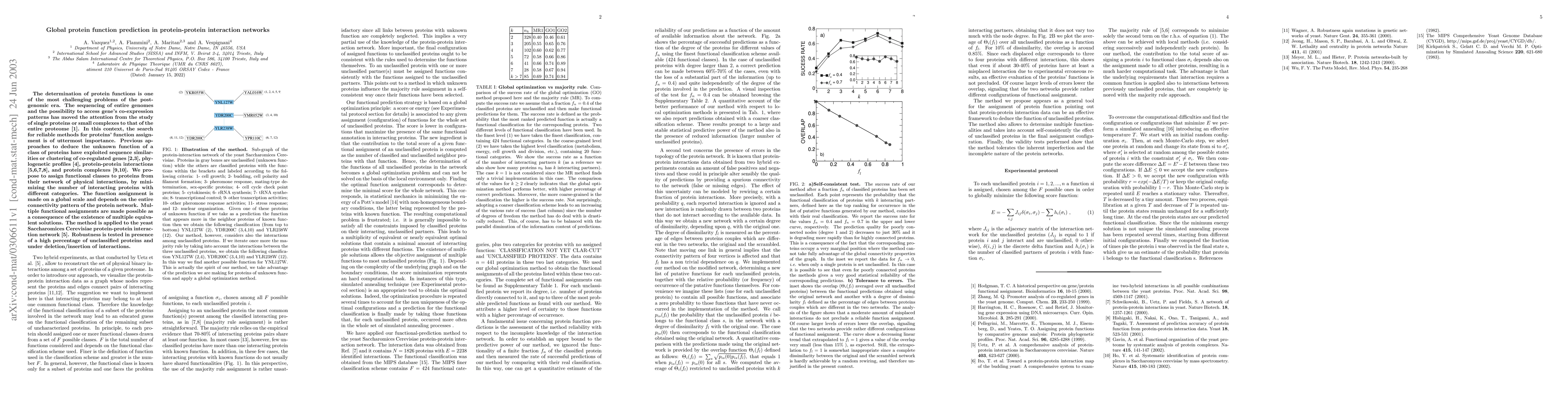 Researchers propose a method to predict protein functions based on their network of physical interactions, minimizing conflicting functional assignments. The approach is tested in the yeast Saccharomies Cerevisiae protein-protein interaction network with promising results.
