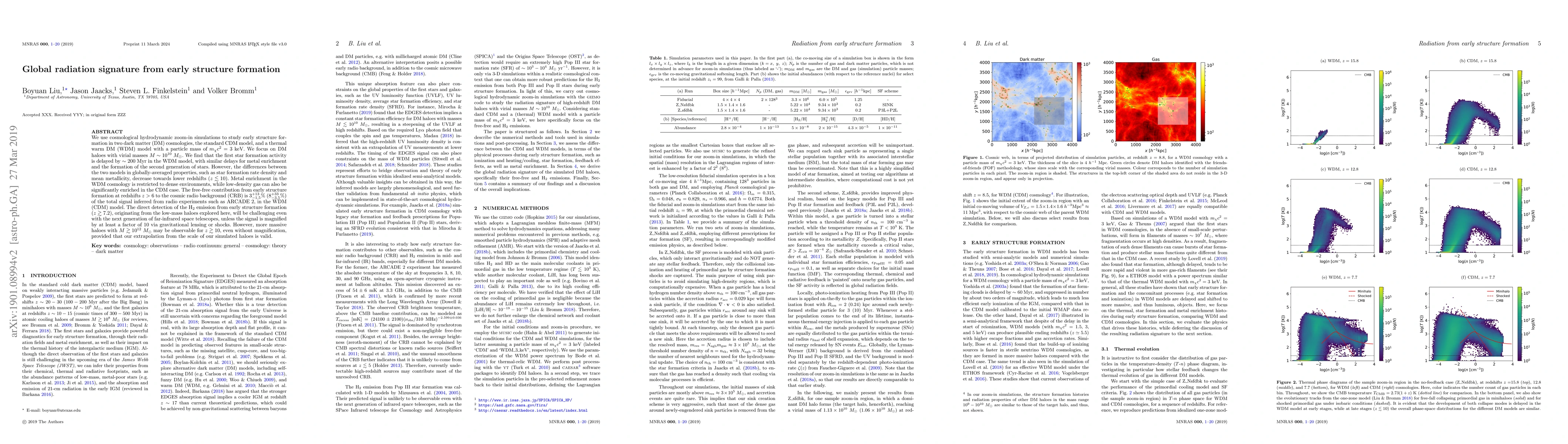 This study uses computer simulations to compare early structure formation in standard CDM and a 3 keV WDM cosmology. It finds that star formation and metal enrichment are delayed in WDM, but differences diminish by z<10. The free-free contribution to the cosmic radio background is similar in both models, while H2 emission detection from low-mass haloes is deemed challenging without magnification, though more massive haloes might be observable.