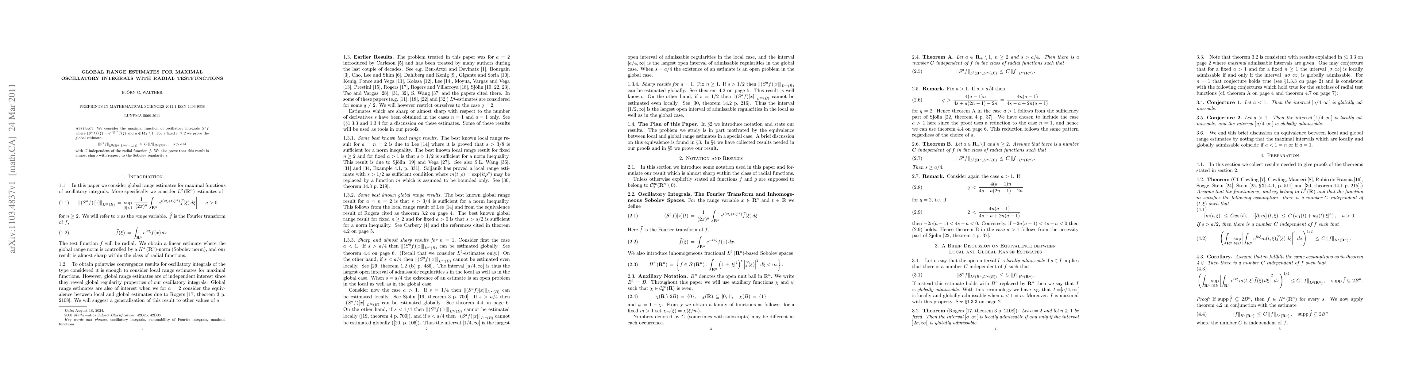 Summary: This paper establishes a near-optimal global estimate for the maximal function of oscillatory integrals when using radial test functions, relating closely to the Sobolev regularity of the functions involved. The result provides significant insights into the behavior of these integrals under radial symmetry.