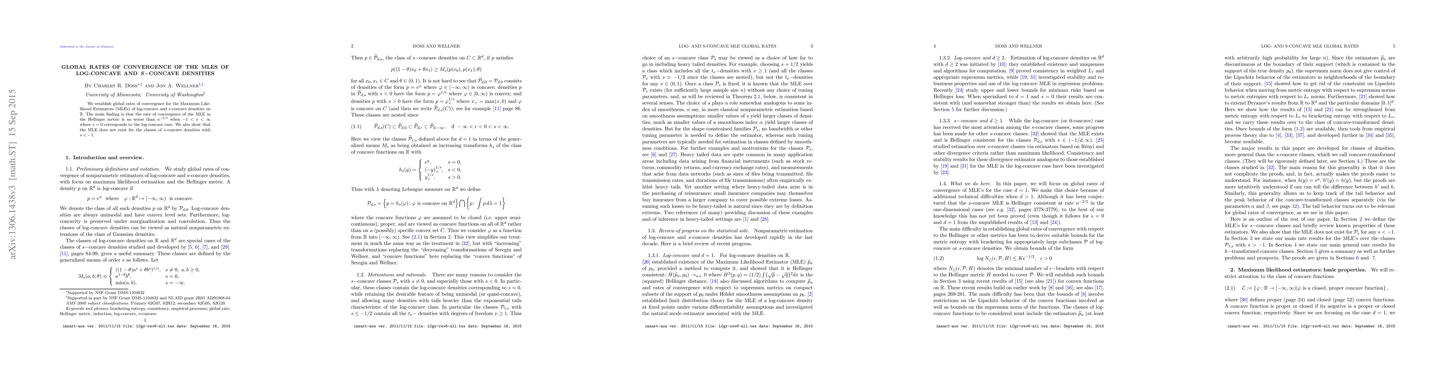 This paper establishes global convergence rates for Maximum Likelihood Estimators (MLEs) of log-concave and $s$-concave densities, showing that the rate in the Hellinger metric is no worse than $n^{-2/5}$ for $-1 < s < \infty$. It also proves the non-existence of MLEs for $s$-concave densities with $s < -1$.