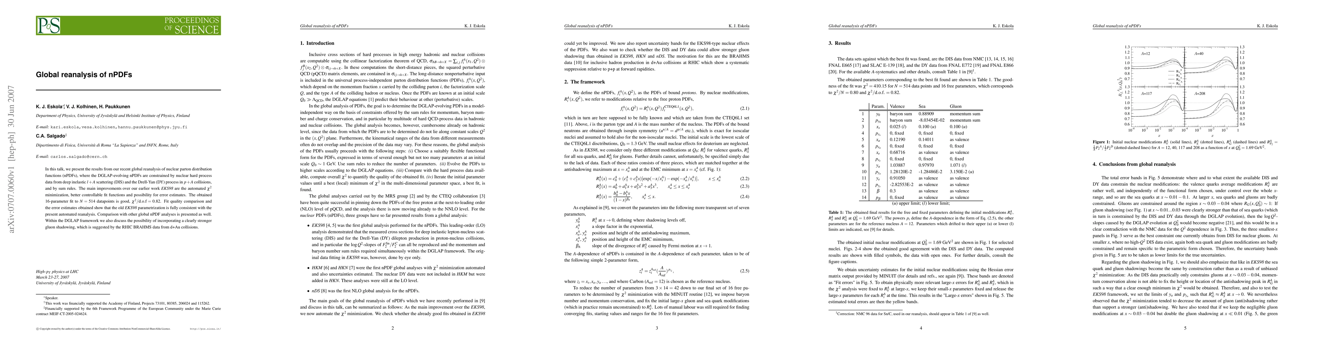 This paper presents a global reanalysis of nuclear parton distribution functions (nPDFs) using improved automated methods and better fit functions, achieving a good fit quality with $\chi^2/{\rm d.o.f}=0.82$. The results are consistent with previous EKS98 parametrization and show potential for stronger gluon shadowing based on RHIC data.