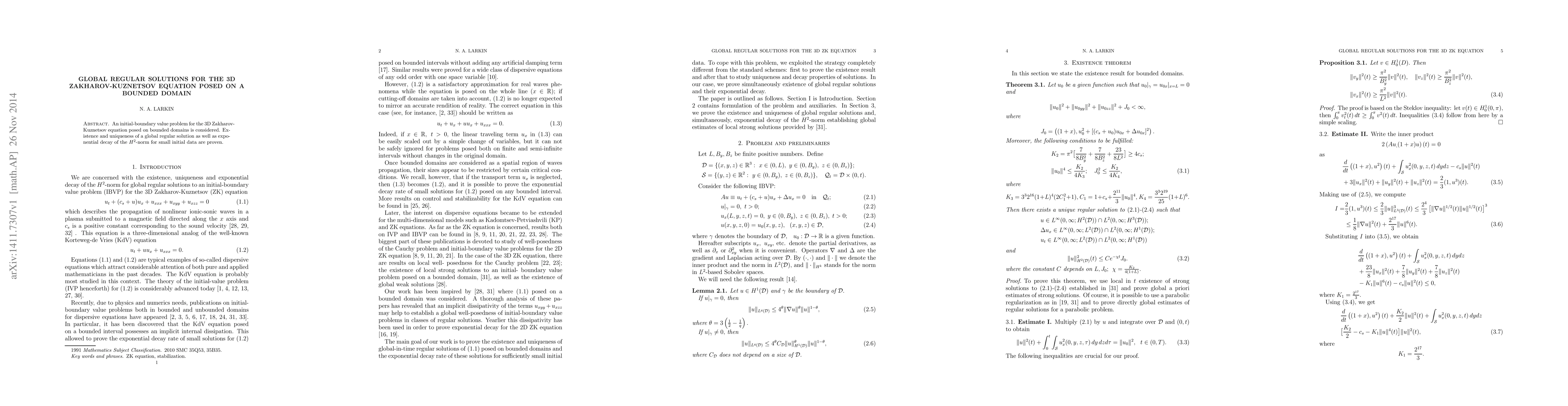 Summary: This paper proves the existence and uniqueness of a global regular solution for the 3D Zakharov-Kuznetsov equation on bounded domains, along with exponential decay of the $H^2$-norm for small initial data.