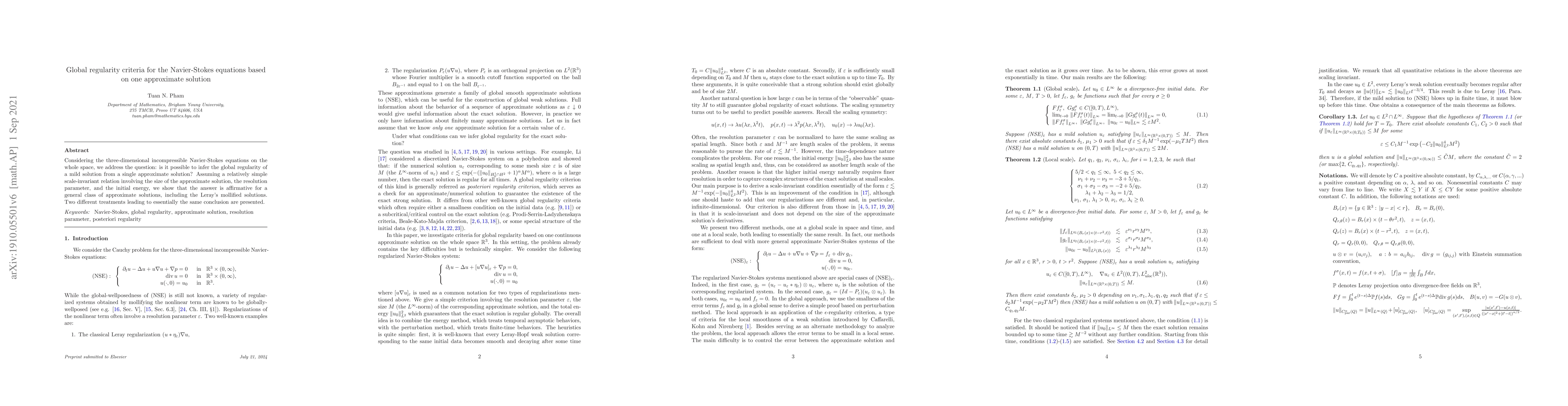 Considering the three-dimensional incompressible Navier-Stokes equations on the whole space, we address the question: is it possible to infer global regularity of a mild solution from a single approximate solution? Assuming a relatively simple scale-invariant relation involving the size of the approximate solution, the resolution parameter, and the initial energy, we show that the answer is affirmative for a general class of approximate solutions, including Leray's mollified solutions. Two different treatments leading to essentially the same conclusion are presented.