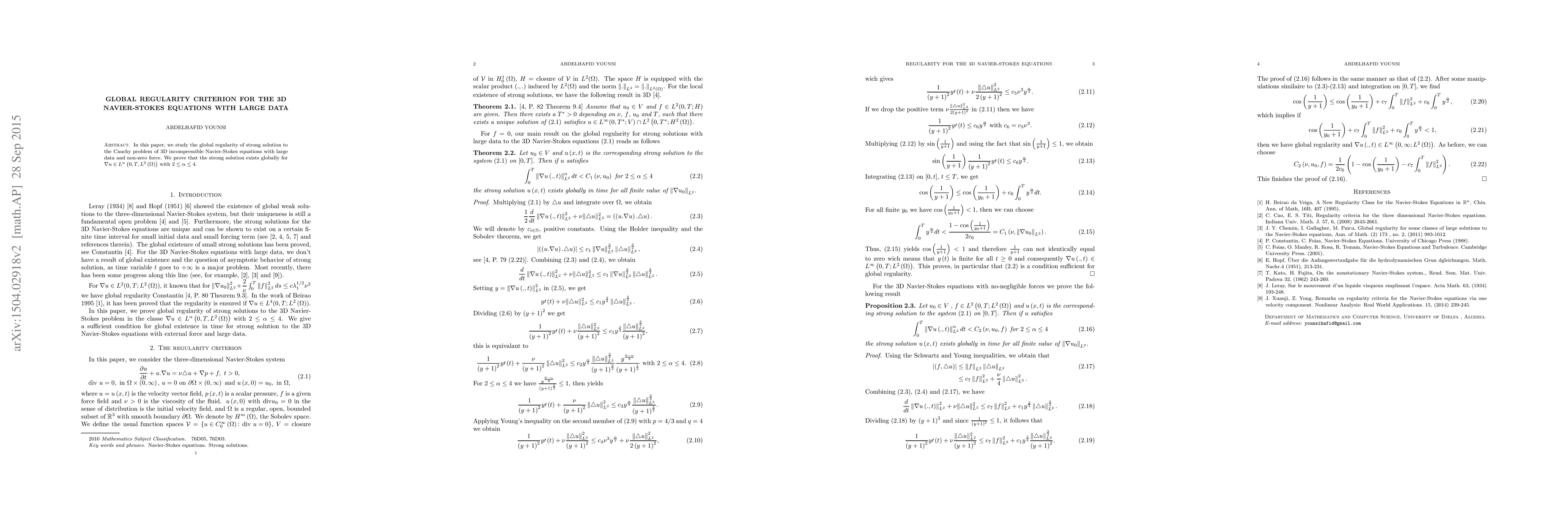 This paper establishes a global regularity criterion for the 3D Navier-Stokes equations, proving that strong solutions exist globally when the velocity gradient $\nabla u$ belongs to the $L^{\alpha}$ space with $2\leq\alpha\leq4$ for large initial data and non-zero force.